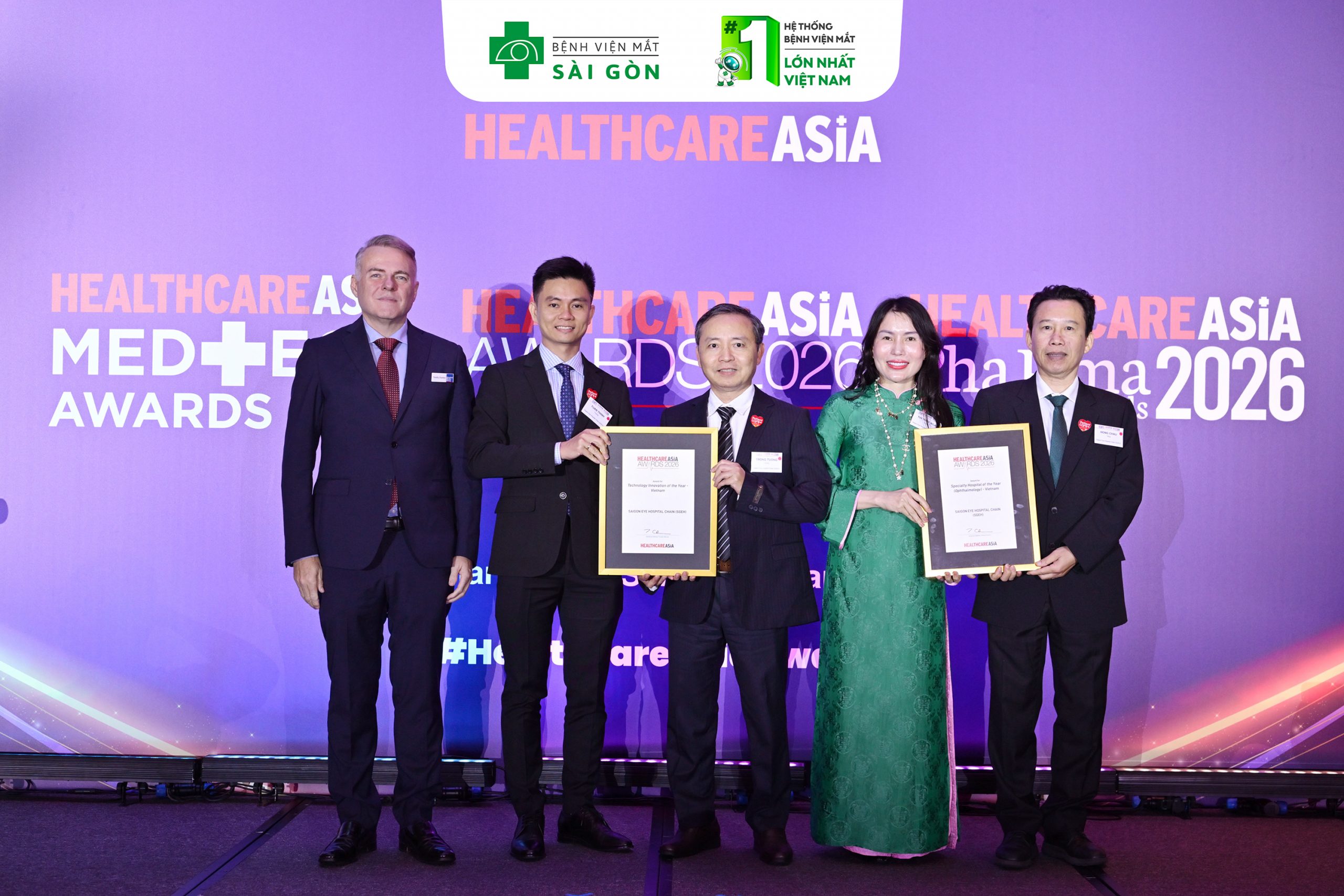 Hệ thống bệnh viện Mắt Sài Gòn ghi dấu ấn tại Healthcare Asia Awards 2026 với hai hạng mục, khẳng định vị thế hàng đầu trong lĩnh vực nhãn khoa.